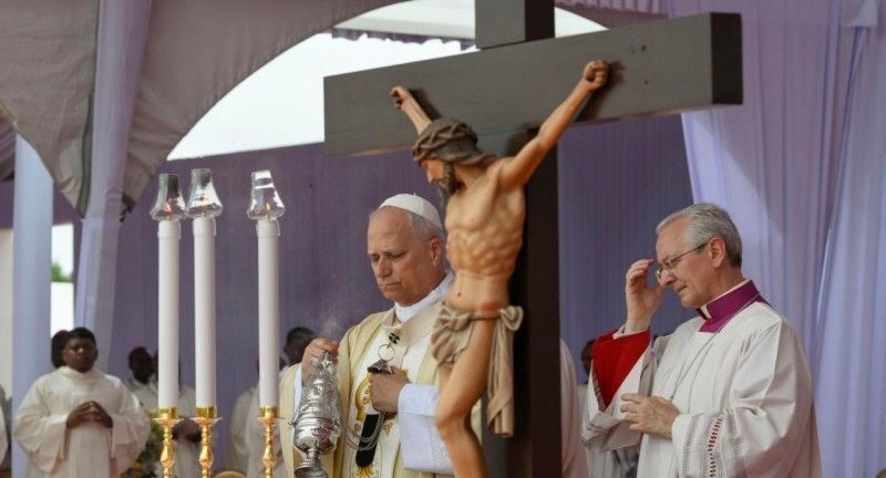 Hermanos y hermanas, en esta escena inicial del Evangelio veo reflejada la historia de Angola, de este país bellísimo pero lastimado, que tiene hambre y sed de esperanza, de paz y de fraternidad. En efecto, la conversación de los dos discípulos mientras camina, recordando con tristeza lo que le ha sucedido a su Maestro, nos trae a la memoria el dolor que ha marcado a este país: una larga guerra civil con su secuela de enemistades y divisiones, de recursos malgastados y de pobreza.